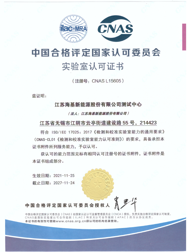 喜訊 | 海基新能源通過CNAS實驗室認證
